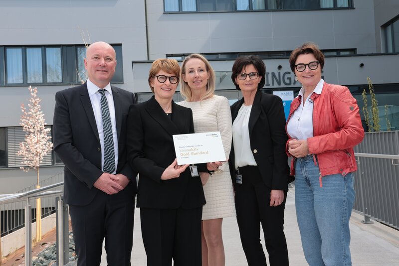 Die Baustufe 3 wurde nach dem klimaaktiv Gebäudestandard Gold errichtet. Der klimaaktiv Gebäudestandard des Klimaschutzministeriums ist das europaweit erfolgreichste und gleichzeitig anspruchsvollste Gütesiegel für nachhaltiges Bauen, denn er definiert die im internationalen Vergleich strengsten Anforderungen im Bereich Energieeffizienz. Er ist somit ein idealer Leitfaden, um klimafreundliches, ökologisches und ein angenehmes Arbeitsumfeld zu garantieren. Bereits 2021 wurde die Baustufe 3 im LKH Wolfsberg nach diesem Standard ausgezeichnet – im Zuge der offiziellen Inbetriebnahme wurde durch eine Vertreterin des Bundesministeriums für Klimaschutz, Umwelt, Energie, Mobilität Innovation und Technologie (BMK) dem LKH Wolfsberg die Urkunde und die Plakette übergeben.
